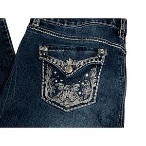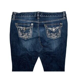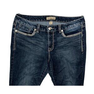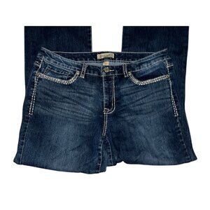 Nine West Vintage America Womens Dark Wash Embellished Jeans 12/31 Mid-Rise Boot