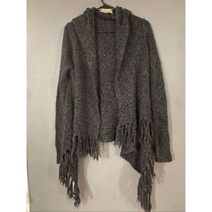 Nine West Vintage American Dark Gray Fringe Open Front Cardigan Size M