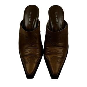 Nine West Vintage Brown Leather Snip Pointed Toe Western Mules Women's Size 7