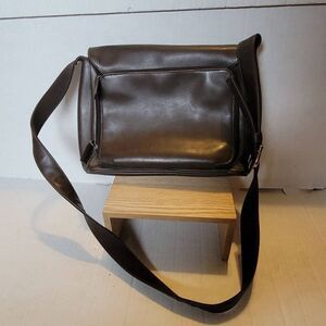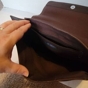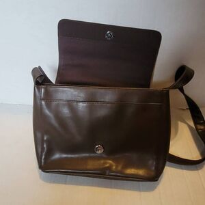 Nine West Vintage Multi Compartment Crossbody Brown Hipster Bag. Pocket in outside flap. Outside flap snaps nicely. Straps are attached well. Hardware on straps are good and work. Inside main compartment is a small usable pocket that closes. Zippers all work.