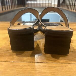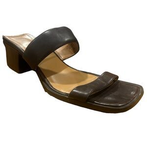 Nine West Dark Brown Leather Square Toe Block Heel Double Strap Sandal