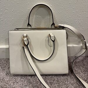 Nine West White Faux Leather Handbag with Gold Hardware