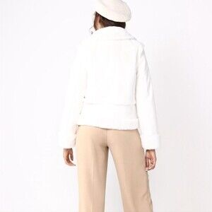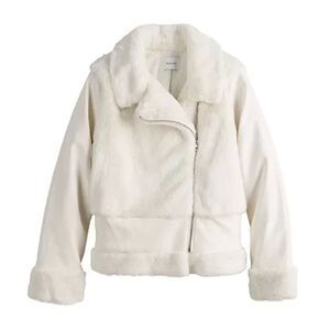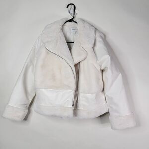 Nine West White Faux-Fur Faux-Leather Moto Jacket
