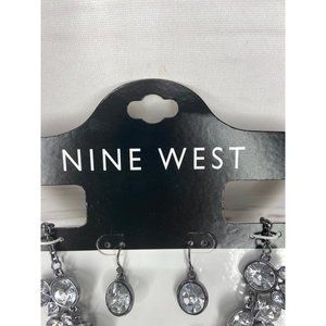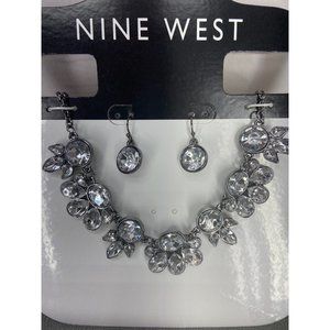Nine West White Rhinestone Necklace Set Silver Tone Fish Hook Earrings Prom