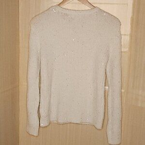 Nine West White Soft Sweater Silver Sparkle Detail Small