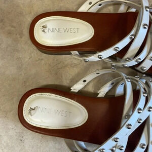 Nine West White Studded Criss Cross FlatMule Sandals