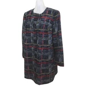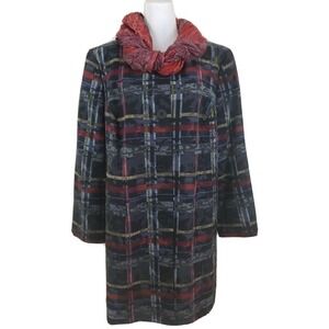 Nine West~ Woman Plus Size 18W~ Black/Red Plaid Trench Coat Long Sleeve Lined.