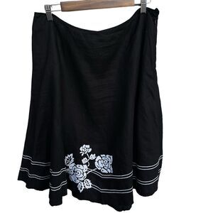 Nine West Woman Skirt Womens 14W Black Embroidered Floral Boho Raw Hem Linen Flowy