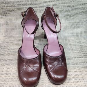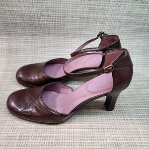 Nine West Woman's Leather 3 1/4" Heels Size 8M Ankle Strap Brown