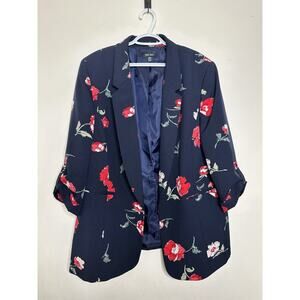Nine West Woman’s Plus 2X Navy Floral Jacket Blazer Floral 3/4 Sleeve Open Front