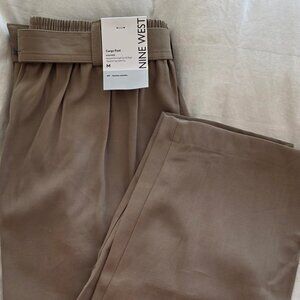 Nine West Women Belted High Rise Cargo Pant Tapered Leg Brown/Khaki Size M NWT