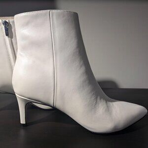 🆕Nine West Women Cream Leather 150 Fur Point Toe Ankle Stiletto Heel Boot