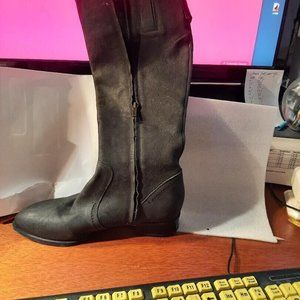 Nine West Women Nicolah Knee High Wide Calf Leather Boot Black Sz7 PreLoved Good Condition