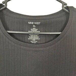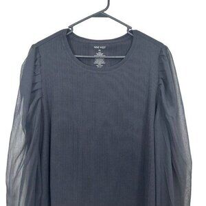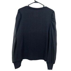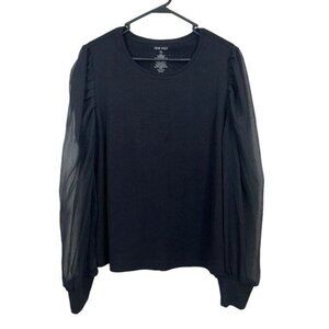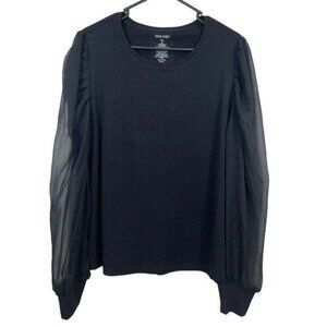 Nine West Women SZ XL Black Long Sheer Sleeves Top Blouse. Stretch Basic