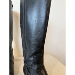 Nine West Women’s 10 Blogger Harness Riding Boots Mid Calf Black Leather Preppy