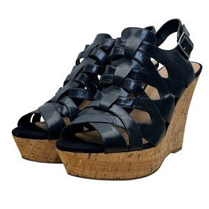 Nine West Women’s Black Leather Wedge Open Toe Josette Sandals Size 9M