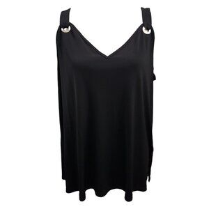 Nine West Womens Black V Neck Sleeveless Blouse XL
