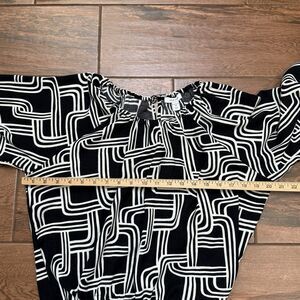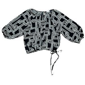 Nine West Women's Black & White Cinched Waist Blouse Cropped Tie 3/4 Sleeve Sz M