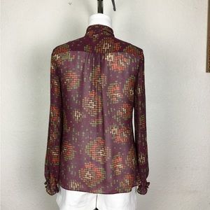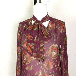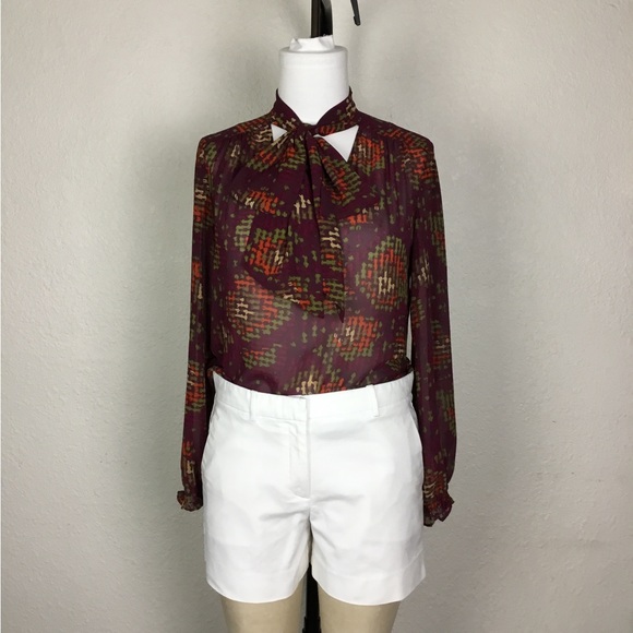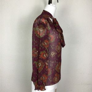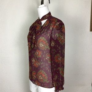 Nine West Womens Blouse Size M Geometric Print Multicolor Long Sleeve Vi…