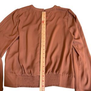 Nine West Womens Blouse Small Spice Long Sleeve Round Neck Twist Front Top