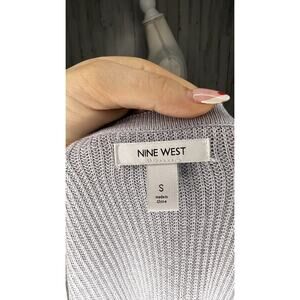 Keywords: Nine West cardigan, women's blue sweater, long sleeve cardigan, open front sweater, casual fall sweater, rayon cardigan, solid pattern sweater, women's regular size cardigan, China-made sweater, women's fashion, pre-owned women's cardigan, stylish blue cardigan, fall fashion sweater, women's casual wear, versatile women's sweater.