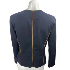 Nine West Women's Blue Orange Trim Long Sleeve One Button Blazer Coat Jacket 6