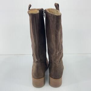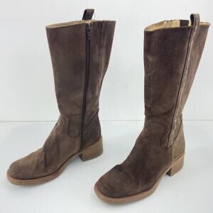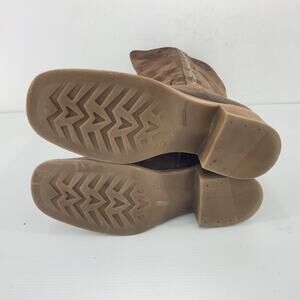 Nine West Women's Brown Embroidered Side Zip Pull On Leather Riding Boots 5/5.5