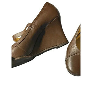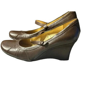 Nine West Women's Brown Leather Upper Mary Jane Platform Heels Size 8