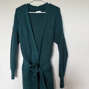 Nine West Womens Cardigan Sweater Medium Teal Ribbed Belted Capsule Cozy Winter