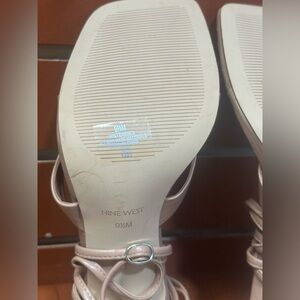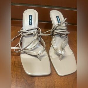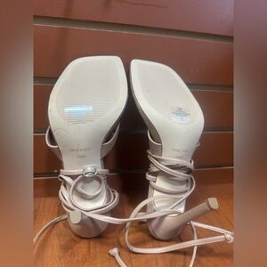 Chic cream heels with elegant straps. Perfect for versatile styling.