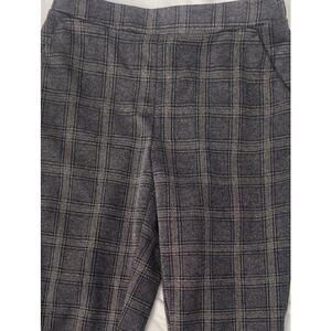 Nine West Womens Crop Pants Plaid Stretch Flat Front Elastic Waist Gray MS