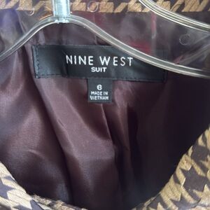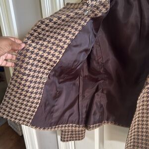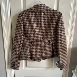 Nine West Womens Cropped Blazer size 6 Brown Double Breasted Houndstooth Lined
