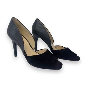 Nine West Women's D'Orsay Peep Toe Pumps Heels Size 9 Black Suede Leather