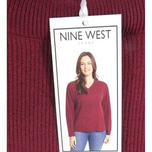 Nine West Women's Fig V-Neck Sweater XL Ribbed Knit Pullover Long Sleeve NWT $49