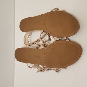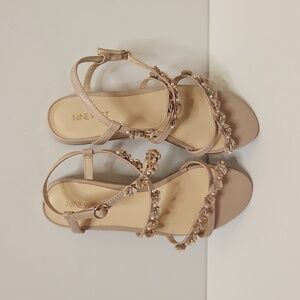 -Nine West Women's Floral Rosebuds and Pearls Taupe Slingback Sandal Size 9