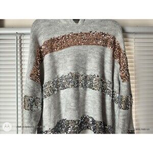 Nine West Women's Gray Hooded Sequin Sweater Size XXL