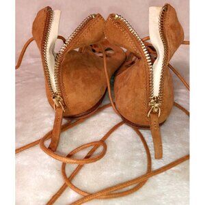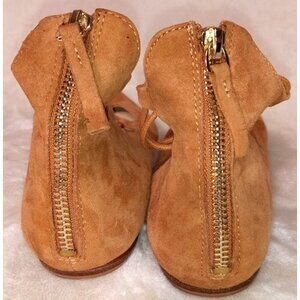 Nine West Women's Lace-Up Suede Flats Rear Zippers Size 7M Tan Leather Upper
