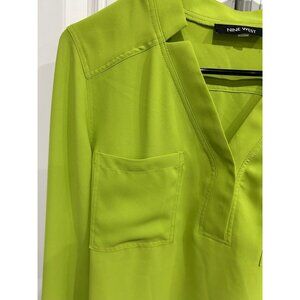 Nine West Womens Lime Green Long Sleeve Blouse V Neck Chest Pockets Size M