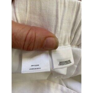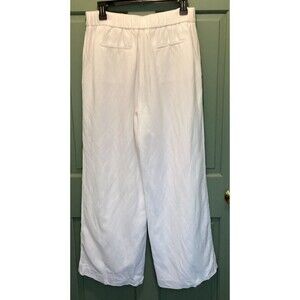 Elevate your wardrobe with these Nine West Women's Linen Blend Pants. The solid white color and minimalistic design make them a versatile closet staple for any occasion, whether it's casual, business, or travel. The pants feature a zip closure, flat front, and high rise with a waist size of 30 inches. Crafted from a blend of 52% linen and 48% viscose, these wide-leg pants offer comfort and breathability, perfect for the summer, fall, or spring seasons. Dry clean only. The pants are lined and equipped with pockets for added convenience. Available in size 8, these regular-fit pants are a must-have for any fashion-forward woman.