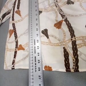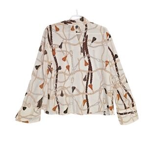 Nine West Women's Long Sleeve Cream Design High Necktie Sheer Blouse Size XL