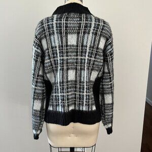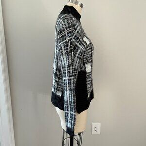Nine West Women's Mock Neck Blue Black Plaid Boxy Sweater Size Small