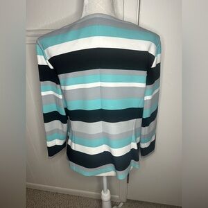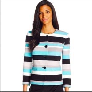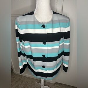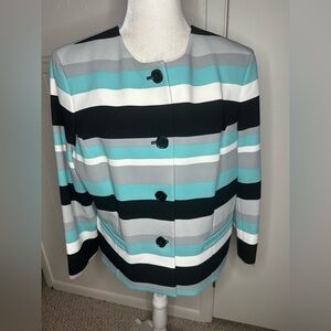 Chic blazer with bold horizontal stripes. Features a button-up front. Ideal for office, formal or any occasions. Like new