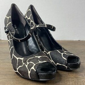 Nine West Women’s NW Luminous Animal Print Open Toe Heels, Calf Hair, size 7.5