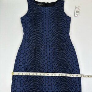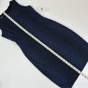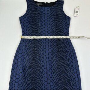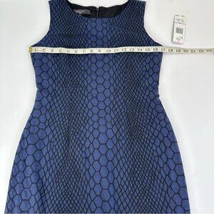 Nine West women's size 6 dress, it is the On The Town style, snakeskin blue and black print, sleeveless, round neckline, stretchy, knee length, lined and zip closure. Materials 81% polyester, 18% rayon, 1% spandex. Care Dry Clean Only. RN#54050 SA 08349 MFSR:$129.00 Condition is new with tags as shown in pictures. Please preview the measurements below to ensure fit.