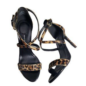 Nine West Womens Natural Fur Leopard Print Open Toe Strappy High Heels Sz 6.5 7