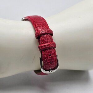 Nine West Womens Patriotic Watch With Red Faux Leather Strap Silver Tone Case