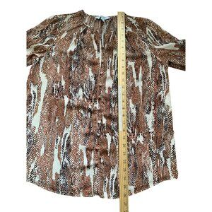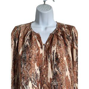 Nine West Womens Petite Snake Print Blouse Brown & Cream Long Sleeve Size PS