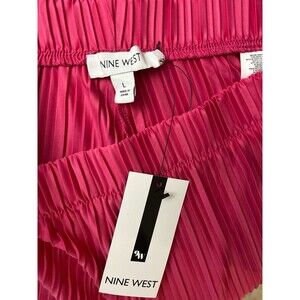 Nine West Women’s Pink Pleated Wide Leg Pants Size L NWT Polyester Elastic Waist