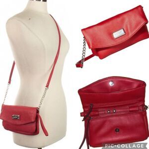 Nine West Women's Pink Textured Vegan Leather Chain Strap Wallet Crossbody Bag