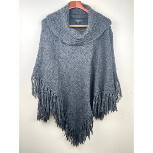 Nine West Womens Poncho XL Oversized Fringe Chunky Thick Cowl Boho Hippie Cabin